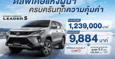 ผ่อนเริ่มต้น 6,705 บาท* พร้อมประกันภัยชั้น 1 Toyota Care PHYD • พิเศษ สำหรับกลุ่มธุรกิจขนส่งและกระจายสินค้า (Logistics) ลดเพิ่ม 15,000 บาท**