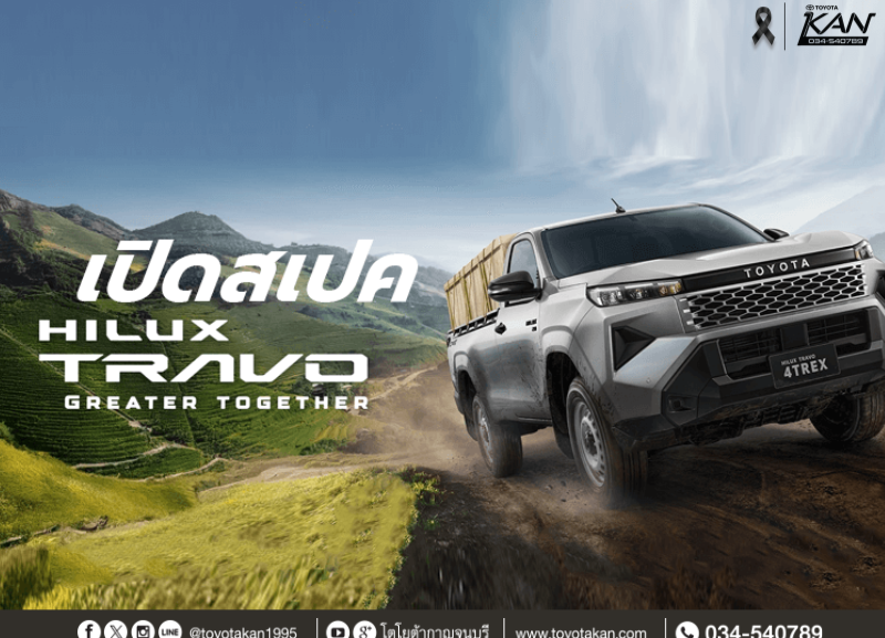 - A: Toyota Hilux Travo เป็นรถกระบะรุ่นใหม่ (Next Generation) ที่ถูกพัฒนาขึ้นเพื่อตอบโจทย์การใช้งานที่หลากหลาย ทั้งการขับขี่ในเมืองและลุยเส้นทาง Off-Road รวมถึงรุ่นที่รองรับการใช้งานเชิงพาณิชย์และรุ่นไฟฟ้า 100%